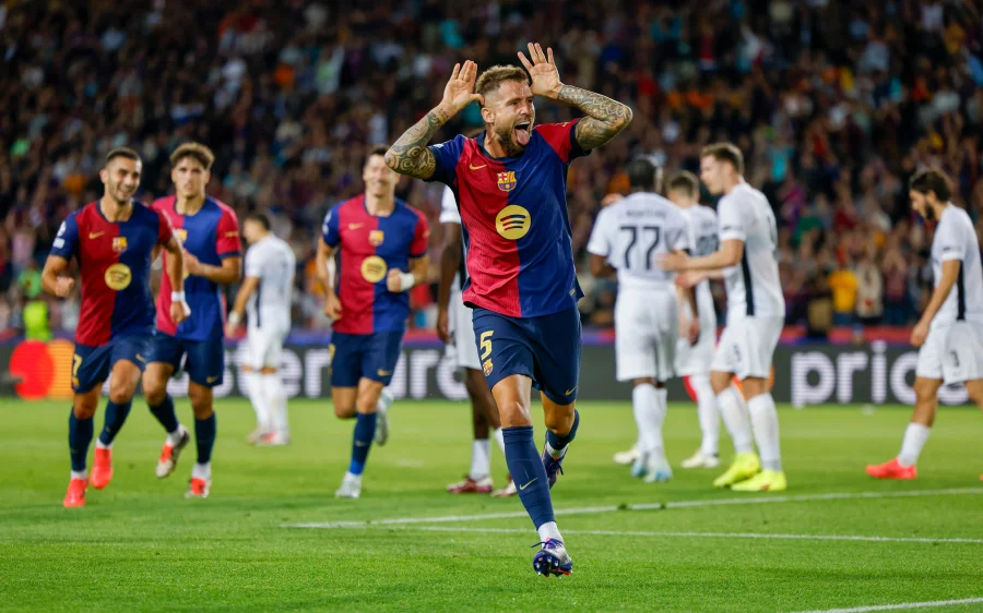 Defensively, Barcelona was equally impressive. Jules Koundé, in his Barcelona home jersey, made several crucial tackles, while Marc - André ter Stegen, in the goalkeeper’s jersey with its distinctive green hue, kept a clean sheet with a stunning save late in the game. The team’s unity was evident, with players celebrating goals by hugging teammates, their jerseys clashing in a colorful display of camaraderie.